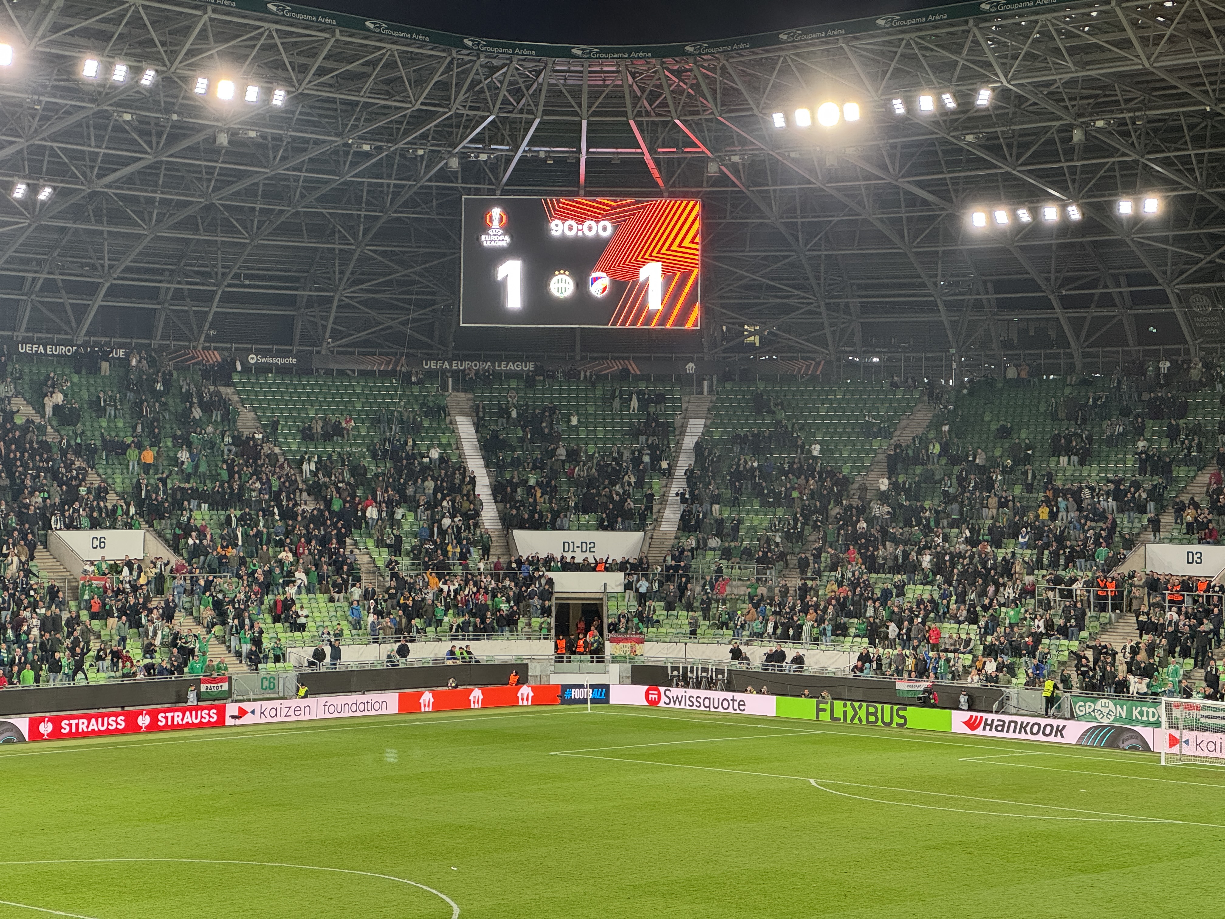 Ferencvarosi TC-FC Viktoria Plzen 1:1 Groupama Arena Budapest UEFA Europa League Attendance 16117